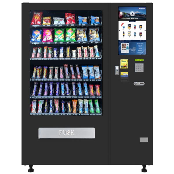 A 21.5″ multimedia touchscreen—upgradable to 32″—displays product selections and advertisements.